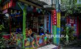 Anak-anak saat membaca buku di Bale Buku, Gang Dendrit, Cakung, Jakarta, Jumat (4/6). Bale Buku yang memanfaatkan tempat pos ronda itu menjadi sarana edukasi, bermain dan belajar, yang bertujuan untuk meningkatkan literasi anak-anak di lingkungan Gang Dendrit. (FOTO : Republika/Putra M. Akbar)