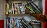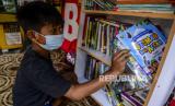 Anak-anak memilih buku untuk dibaca di Bale Buku, Gang Dendrit, Cakung, Jakarta, Jumat (4/6). Bale Buku yang memanfaatkan tempat pos ronda itu menjadi sarana edukasi, bermain dan belajar, yang bertujuan untuk meningkatkan literasi anak-anak di lingkungan Gang Dendrit. Republika/Putra M. Akbar (FOTO : Republika/Putra M. Akbar)