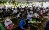 Sejumlah jamaah berdoa saat penyelenggaraan Shalat Jumat di Tenda Arafah yang merupakan lapangan Masjid At Tabayyun di kawasan Meruya, Jakarta, Jumat (4/6). Masjid At-Tabayyun yang berada di perumahan Taman Villa Meruya itu kini telah memiliki izin penggunaan lahan aset Pemprov DKI Jakarta seluas 1.078 meter persegi untuk pembangunan masjid dan direncanakan akan dilakukan peletakan batu pertama pada Agustus 2021. Sebelumnya, pembangunan Masjid At-Tabayyun itu sempat ditentang oleh sebagian warga yang kini mereka mengajukan gugatan terhadap SK Gubernur DKI Jakarta Nomor 1021 Tahun 2020 ke Pengadilan Tata Usaha Negara (PTUN) Jakarta. Republika/Putra M. Akbar (FOTO : Republika/Putra M. Akbar)