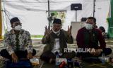 Wakil Ketua Dewan Pertimbangan MUI Muhyiddin Junaidi (tengah) bersama Wakil Sekjen Bidang Hukum dan HAM MUI Ikhsan Abdullah (kiri) menyampaikan konferensi pers usai penyelenggaraan Shalat Jumat di Tenda Arafah yang merupakan lapangan Masjid At Tabayyun di kawasan Meruya, Jakarta, Jumat (4/6). Masjid At-Tabayyun yang berada di perumahan Taman Villa Meruya itu telah memiliki izin penggunaan lahan aset Pemprov DKI Jakarta seluas 1.078 meter persegi untuk pembangunan masjid dan direncanakan akan dilakukan peletakan batu pertama pada Agustus 2021. Sebelumnya, pembangunan Masjid At-Tabayyun itu sempat ditentang oleh sebagian warga yang kini mereka mengajukan gugatan terhadap SK Gubernur DKI Jakarta Nomor 1021 Tahun 2020 ke Pengadilan Tata Usaha Negara (PTUN) Jakarta. Republika/Putra M. Akbar (FOTO : Republika/Putra M. Akbar)