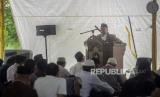 Wakil Ketua Dewan Pertimbangan MUI Muhyiddin Junaidi menyampaikan khotbah saat penyelenggaraan Shalat Jumat di Tenda Arafah yang merupakan lapangan Masjid At Tabayyun di kawasan Meruya, Jakarta, Jumat (4/6). Masjid At-Tabayyun yang berada di perumahan Taman Villa Meruya itu kini telah memiliki izin penggunaan lahan aset Pemprov DKI Jakarta seluas 1.078 meter persegi untuk pembangunan masjid dan direncanakan akan dilakukan peletakan batu pertama pada Agustus 2021. Sebelumnya, pembangunan Masjid At-Tabayyun itu sempat ditentang oleh sebagian warga yang kini mereka mengajukan gugatan terhadap SK Gubernur DKI Jakarta Nomor 1021 Tahun 2020 ke Pengadilan Tata Usaha Negara (PTUN) Jakarta. Republika/Putra M. Akbar (FOTO : Republika/Putra M. Akbar)