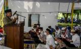 Wakil Ketua Dewan Pertimbangan MUI Muhyiddin Junaidi memimpin doa saat penyelenggaraan Shalat Jumat di Tenda Arafah yang merupakan lapangan Masjid At Tabayyun di kawasan Meruya, Jakarta, Jumat (4/6). Masjid At-Tabayyun yang berada di perumahan Taman Villa Meruya itu kini telah memiliki izin penggunaan lahan aset Pemprov DKI Jakarta seluas 1.078 meter persegi untuk pembangunan masjid dan direncanakan akan dilakukan peletakan batu pertama pada Agustus 2021. Sebelumnya, pembangunan Masjid At-Tabayyun itu sempat ditentang oleh sebagian warga yang kini mereka mengajukan gugatan terhadap SK Gubernur DKI Jakarta Nomor 1021 Tahun 2020 ke Pengadilan Tata Usaha Negara (PTUN) Jakarta. Republika/Putra M. Akbar (FOTO : Republika/Putra M. Akbar)