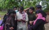 REPUBLIKA.CO.ID, ACEH TIMUR -- Sejumlah imigran etnis Rohingya berada di kawasan pantai Kuala Simpang Ulim, Simpang Ulim, Aceh Timur, Aceh, Jumat (4/6/2021). Sebanyak 81 imigran etnis Rohingnya terdampar di kawasan pantai Kuala Simpang Ulim pada pukul 07:00.WIB.
