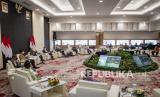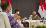REPUBLIKA.CO.ID, SOLO -- Peserta mengikuti acara Sarasehan dan Koordinasi Pemulihan Ekonomi Solo Raya di Kantor OJK, Solo, Jawa Tengah, Jumat (4/6/2021). Acara yang diikuti Kepala Daerah di Solo Raya, Akademisi dan Otoritas Jasa Keuangan (OJK) tersebut membahas langkah dan strategi membangkitkan kembali aktivitas ekonomi terutama di sektor Pariwisata, Perdagangan dan Industri untuk mempercepat pemulihan ekonomi.