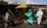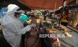 REPUBLIKA.CO.ID, SURABAYA -- Petugas kesehatan melakukan tes usap PCR COVID-19 kepada pedagang di pasar tradisional, Jalan Indrakila, Surabaya, Jawa Timur, Sabtu (5/6/2021).
