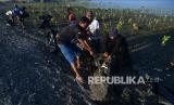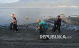 REPUBLIKA.CO.ID, PALU -- Warga memungut sampah saat aksi gotong royong membersihkan Pantai Dupa Indah di Palu, Sulawesi Tengah, Sabtu (5/6/2021).