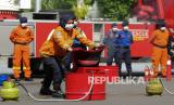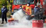 REPUBLIKA.CO.ID, SURABAYA -- Petugas Dinas Pemadam Kebakaran Kota Surabaya menunjukkan cara memadamkan api menggunakan Alat Pemadam Api Ringan (APAR) saat sosialisasi Simulasi Pencegahan dan Penanggulangan Kebakaran di Permukiman di halaman Balai Kota Surabaya, Jawa Timur, Sabtu (5/6/2021).