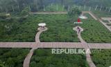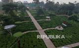 REPUBLIKA.CO.ID, BATANG -- Foto udara hamparan taman wisata kebun teh Patitie di Blado, Kabupaten Batang, Jawa Tengah, Sabtu (5/6/2021).