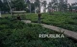 Wisata kebun teh yang menawarkan pemandangan hamparan pohon teh dan lokasi tempat swa foto di tengah kebun teh itu menjadi daya tarik wisatawan saat akhir pekan di Kabupaten Batang.