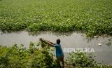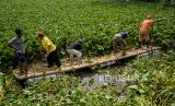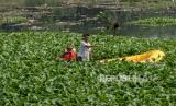 REPUBLIKA.CO.ID, DEPOK -- Warga bersama Masyarakat Peduli Ciliwung (Mat Peci) membersihkan tumbuhan eceng gondok dan limbah rumah tangga di Situ Pengarengan, Depok, Jawa Barat, Ahad (6/5). Kegiatan tersebut dalam rangka memperingati Hari Lingkungan Hidup 2021 dengan melakukan pemulihan Situ Pengarengan dari limbah rumah tangga dan tumbuhan eceng gondok.