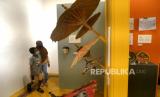 Pengunjung mencoba mainan kapal-kapalan saat acara Kembara Gembira di Museum Sonobudoyo, Yogyakarta, Ahad (6/6). Dalam pameran ini menampilkan berbagai macam jenis permainan tradisional untuk anak-anak. (FOTO : Wihdan Hidayat / Republika)