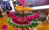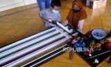 Pengunjung mencoba membuat mainan tradisional saat acara Kembara Gembira di Museum Sonobudoyo, Yogyakarta, Ahad (6/6). (FOTO : Wihdan Hidayat / Republika)