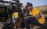 REPUBLIKA.CO.ID, JAKARTA -- Sejumlah bocah mencari sisa besi bekas di lokasi kapal yang dibelah di Cilincing, Jakarta, Ahad (6/6/2021). Meski kegiatan mencari besi bekas dari sisa kapal yang dibelah itu berbahaya bagi anak-anak, namun mereka masih mencarinya dengan alasan untuk menambah uang jajan atau ditabung.