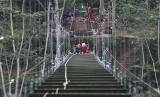 REPUBLIKA.CO.ID, TASIKMALAYA -- Personel tim Vertical Rescue Indonesia (VRI) membangun sebuah jembatan gantung di Desa Cisempur, Kecamatan Cibalong, Kabupaten Tasikmalaya, Jawa Barat, Ahad (6/6). Data VRI mencatat pihaknya telah membangun 1.024 jembatan perintis di seluruh pelosok nusantara dalam rangkaian Ekspedisi 1.000 Jembatan Gantung untuk Indonesia yang dibangun secara gotong royong bersama masyarakat. ANTARA FOTO/Adeng Bustomi/wsj.