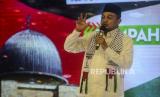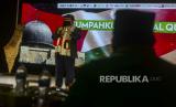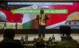 Ustaz Fahmi Salim meberikan sambutan pada acara peringatan 54 tahun pendudukan Al Aqsa oleh Zionis Israel di AQL Islamic Center, Tebet, Jakarta, Senin (7/6). Pada peringatan yang dihadiri oleh tokoh ulama beserta pemuda yang tergabung dalam Koalisi Indonesia Bebaskan Baitul Maqdis (KIBBM) itu mendeklarasikan Sumpahku Untuk Al-Aqsha. Republika/Putra M. Akbar (FOTO : Republika/Putra M. Akbar)