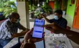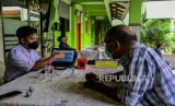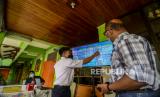 Seorang guru memperlihatkan website PPDB kepada orang tua murid di SMA Negeri 87 Jakarta, Senin (7/6). Proses penerimaan Peserta Didik Baru (PPDB) Tahun Pelajaran 2021/2022 di DKI Jakarta mulai dibuka pada Senin (7/6). Pada tahun ini, ada empat jalur pendaftaran yang dibuka meliputi jalur prestasi, afirmasi, zonasi, perpindahan tugas orang tua dan anak guru. Republika/Putra M. Akbar (FOTO : Republika/Putra M. Akbar)