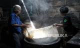 REPUBLIKA.CO.ID, YOGYAKARTA -- Perajin memproduksi tahu di sentra industri tahu, Krapyak, Margoagung, Seyegan, Sleman, D.I Yogyakarta, Senin (7/6/2021).