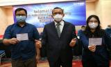 Direktur Utama PT Bank Tabungan Negara (Persero) Tbk (BTN) Haru Koesmahargyo didampingi dua pegawai yang telah divaksin saat meninjau pelaksanaan Vaksinasi Gotong-Royong bagi pegawai dan keluarga pegawai se-Jabotabek di Kantor Pusat Bank BTN, Jakarta, Senin (7/6/2021). (FOTO : dok. BTN)