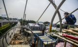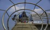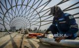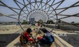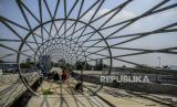 REPUBLIKA.CO.ID, JAKARTA -- Pekerja menyelesaikan pembangunan jembatan penyeberangan orang (JPO) flyover tapal kuda di kawasan Lenteng Agung, Jakarta, Selasa (8/6). Dinas Bina Marga DKI Jakarta menargetkan pembangunan JPO tersebut rampung pada akhir Juni 2021.