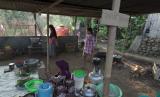 Warga menyiapkan dapur umum bagi pengungsi korban bencana tanah bergerak di Desa Karanggintung, Gandrungmangu, Cilacap, Jateng, Senin (7/6/2021). Sebanyak 81 jiwa mengungsi akibat bencana tanah bergerak yang merusak rumah mereka, sehingga membahayakan apabila terus ditinggali karena pergerakan tanah masih terus terjadi. (FOTO : ANTARA/Idhad Zakaria)