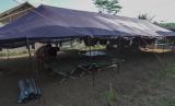 Warga menyiapkan tenda pengungsian bagi korban bencana tanah bergerak di Desa Karanggintung, Gandrungmangu, Cilacap, Jateng, Senin (7/6/2021). Sebanyak 81 jiwa mengungsi akibat bencana tanah bergerak yang merusak rumah mereka, sehingga membahayakan apabila terus ditinggali karena pergerakan tanah masih terus terjadi. (FOTO : ANTARA/Idhad Zakaria)