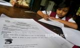 Siswa SD Winongo, Langit mengerjakan soal Penilaian Akhir Tahun (PAT) di rumahnya, Sembungan, Bantul, Yogyakarta, Selasa (8/6). Pada PAT semester ini siswa masih harus mengerjakan di rumah. Orang tua atau wali akan mengambil soal pada pagi sekaligus mengumpulkan lembar jawaban sebelumnya. Hal ini karena pembelajaran tatap muka belum digelar di setiap sekolah. Sehingga mengerjakan di rumah menjadi pilihan di tengah pandemi Covid-19. (FOTO : Wihdan Hidayat / Republika)