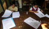 Siswa SD Winongo, Nares dan Langit mengerjakan soal Penilaian Akhir Tahun (PAT) di rumahnya, Sembungan, Bantul, Yogyakarta, Selasa (8/6). Pada PAT semester ini siswa masih harus mengerjakan di rumah. Orang tua atau wali akan mengambil soal pada pagi sekaligus mengumpulkan lembar jawaban sebelumnya. Hal ini karena pembelajaran tatap muka belum digelar di setiap sekolah. Sehingga mengerjakan di rumah menjadi pilihan di tengah pandemi Covid-19. (FOTO : Wihdan Hidayat / Republika)