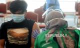REPUBLIKA.CO.ID, JAKARTA -- Petugas kesehatan menyiapkan vaksin Covid-19 sebelum disuntikan kepada seorang pelaku ekonomi kreatif di Sentra Vaksinasi di Neo Soho Mall, Jakarta, Selasa (8/6). Kemenparekraf membuka program vaksinasi COVID-19 bagi para pelaku pariwisata dan ekonomi kreatif di area Jakarta yang berlangsung dari tanggal 8 hingga 11 Juni 2021.