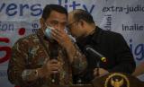 Penyidik Komisi Pemberantasan Korupsi (KPK) Novel Baswedan (kanan) dan Kasatgas Penyidik Komisi Pemberantasan Korupsi (KPK) Harun Al Rasyid (kiri) sebagai perwakilan 75 pegawai KPK yang tak lolos Tes Wawasan Kebangsaan (TWK) memberikan keterangan kepada wartawan usai menjalani pemeriksaan di Kantor Komnas HAM, Jakarta, Selasa (8/6/2021). Novel bersama sejumlah perwakilan pegawai KPK yang tak lolos TWK kembali mendatangi Komnas HAM untuk menyerahkan tambahan informasi dan dokumen terkait laporan dugaan pelanggaran HAM dalam proses TWK. (FOTO : ANTARA/Aditya Pradana Putra)