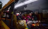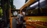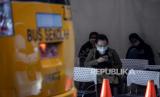 REPUBLIKA.CO.ID, JAKARTA -- Pasien covid-19 menaiki bus khusus pasien untuk dibawa ke Rumah Sakit Darurat Covid-19 (RSDC) Wisma Atlet Kemayoran dari Puskesmas Kecamatan Pasar Minggu, Jakarta, Selasa (8/6).