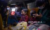 Orang tua mengantarkan anaknya yang terpapar covid-19 untuk dibawa ke Rumah Sakit Darurat Covid-19 (RSDC) Wisma Atlet di Puskesmas Kecamatan Pasar Minggu, Jakarta, Selasa (8/6). Berdasarkan data dari Satuan Tugas Penanganan Covid-19 Jumlah pasien di Indonesia pada Selasa 8 Juni 2021 mengalami kenaikan sebanyak 6.294 orang dengan jumlah total kasus positif covid-19 mencapai 1.869.325 orang. (FOTO : Republika/Thoudy Badai)