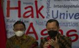 Ketua Komnas HAM Ahmad Taufan Damanik (kanan) dan Komisioner Pemantauan dan Penyelidikan Komnas HAM Choirul Anam memberikan keterangan kepada wartawan terkait tidak dipenuhinya undangan pemeriksaan oleh pimpinan Komisi Pemberantasan Korupsi (KPK) di Kantor Komnas HAM, Jakarta, Selasa (8/6/2021). Komnas HAM memberikan kesempatan kedua kepada Ketua KPK Firli Bahuri untuk dapat hadir memberikan keterangan terkait dugaan pelanggaran HAM terhadap 75 pegawai KPK yang tak lolos Tes Wawasan Kebangsaan (TWK) pada Rabu (9/6). (FOTO : ANTARA/Aditya Pradana Putra)