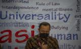 Ketua Komnas HAM Ahmad Taufan Damanik berjalan usai memberikan keterangan kepada wartawan terkait tidak dipenuhinya undangan pemeriksaan oleh pimpinan Komisi Pemberantasan Korupsi (KPK) di Kantor Komnas HAM, Jakarta, Selasa (8/6/2021). Komnas HAM memberikan kesempatan kedua kepada Ketua KPK Firli Bahuri untuk dapat hadir memberikan keterangan terkait dugaan pelanggaran HAM terhadap 75 pegawai KPK yang tak lolos Tes Wawasan Kebangsaan (TWK) pada Rabu (9/6). (FOTO : ANTARA/Aditya Pradana Putra)