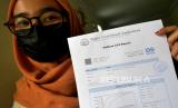 Warga menunjukkan hasil tes Covid-19 menggunakan GeNose C19 di Masjid Jogokariyan, Yogyakarta, Jumat (11/6). Setiap hari, sekitar 150 warga memanfaatkan layanan GeNose C19. Namun dibagi menjadi dua waktu pagi dan malam. Tidak ada tarif untuk memanfaatkan layanan ini, cukup hanya infak minimal Rp 20 ribu untuk satu layanan. (FOTO : Wihdan Hidayat / Republika)