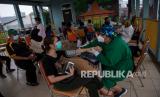 REPUBLIKA.CO.ID, JAKARTA -- Warga antre mendapatkan vaksinasi COVID-19 di RPTRA Bandar Kemayoran, Jakarta Pusat, Jumat (11/6/2021). Pemerintah Provinsi DKI Jakarta resmi menggelar vaksinasi COVID-19 untuk masyarakat umum berusia 18 tahun ke atas yang beraktivitas di wilayah Ibu Kota baik ber-KTP Jakarta maupun luar Jakarta.