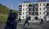 REPUBLIKA.CO.ID, BANDUNG -- Tenaga kesehatan memimpin senam kebugaran untuk pasien Covid-19 yang sedang menjalani isolasi mandiri di Gedung BLK Manggahang, Baleendah, Kabupaten Bandung, Ahad (13/6).