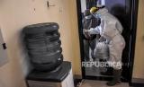 Tenaga kesehatan mengenakan alat pelindung diri (APD) mengantarkan obat dan makanan untuk pasien Covid-19 di Gedung BLK Manggahang, Baleendah, Kabupaten Bandung, Ahad (13/6). Berdasarkan hasil data yang dihimpun dari situs covid19.bandungkab.go.id hingga (12/6) pukul 04.17 WIB tercatat kasus terkonfirmasi Covid-19 di Kabupaten Bandung sudah mencapai 15.652 kasus dan angka kematian akibat Covid-19 sebanyak 265 orang sementara jumlah pasien yang dinyatakan sembuh mencapai 13.870 kasus. Foto: Republika/Abdan Syakura (FOTO : REPUBLIKA/ABDAN SYAKURA)