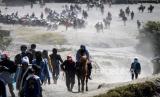 Pemilik mengantarkan pengunjung berkuda di Gunung Bromo, Probolinggo, Jawa Timur, Ahad (13/6/2021). Para pemilik kuda tersebut menawarkan jasanya kepada wisatawan yang ingin menuju puncak Gunung Bromo menggunakan kuda dengan tarif Rp50 ribu sampai Rp150 ribu. (FOTO : ANTARA/Umarul Faruq)