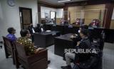 Suasana sidang putusan kasus penyelundupan motor dan sepeda mewah oleh eks Dirut Garuda Indonesia di Pengadilan Negeri Tangerang, Banten, Senin (14/6/2021). I Gusti Ngurah Askhara Danadiputra divonis satu tahun penjara dan denda Rp300 juta karena terbukti bersalah atas kasus kepabeanan motor dan sepeda mewah saat dirinya menjabat sebagai Direktur Utama Garuda Indonesia. (FOTO : ANTARA/Fauzan)