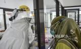 REPUBLIKA.CO.ID, CIAMIS -- Tenaga kesehatan berkomunikasi di ruang isolasi COVID-19 Rumah Sakit Umum (RSU) Dadi Keluarga, Kabupetan Ciamis, Jawa Barat, Senin (14/6).
