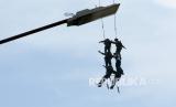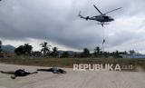 Prajurit Batalyon Intai Amfibi (Yontaifib) Korps Marinir TNI AL melakukan Fastrope pada aksi pembebasan sandera dalam latihan bersama United States Marines Corps Reconnaissance Unit bersandi Reconex 21-II di Pancer, Pesanggaran, Banyuwangi, Jawa Timur, Senin (15/6/2021). Aksi pembebasan sandera itu merupakan pengaplikasian skenario latihan pasukan elit kedua negara di Pusat Latihan Pertempuran Marinir (Puslatpurmar) 5 Baluran dan Puslatpurmar 7 Lampon selama dua pekan. (FOTO : Antara/Budi Candra Setya)