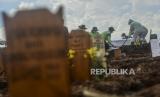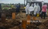 REPUBLIKA.CO.ID, JAKARTA -- Petugas memakamkan jenazah pasien Covid-19 di TPU Rorotan, Jakarta, Selasa (15/6). Satgas Covid-19 mencatat hingga Senin (15/6) pukul 12.00 WIB, terdapat penambahan 237 kasus kematian Covid-19 sehingga total sebanyak 53.116 jiwa meninggal dunia akibat virus Covid-19 di Indonesia.