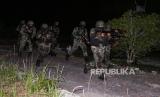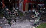 REPUBLIKA.CO.ID, PALANGKARAYA -- Prajurit Batalyon Infantri Raider 631/Antang melakukan misi pembebasan Gubernur Kalteng yang disandera dari kelompok teroris pada latihan pemeliharaan kemampuan prajurit di gedung KONI, Palangkaraya, Kalimantan Tengah, Selasa (15/6) dini hari.