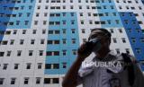 REPUBLIKA.CO.ID, JAKARTA -- Petugas BPBD DKI Jakarta melintas di Rumah Susun Nagrak, Cilincing, Jakarta Utara, Selasa (15/6/2021). Pemprov DKI Jakarta menyiapkan penambahan 2.500 tempat tidur di rusun tersebut apabila pasien rawat inap di Rumah Sakit Darurat COVID-19 (RSDC) Wisma Atlet Kemayoran terus bertambah.ANTARA FOTO/Sigid Kurniawan/