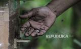 Petugas memperlihatkan kekentalan lebah madu yang dibudidayakan di Hutan Kota Srengseng, Kembangan, Jakarta, Rabu (16/6). Dinas Pertamanan dan Hutan Kota DKI Jakarta membudidayakan lebah trigona yang hasil produksinya dijual seharga Rp 125.000 per 300 mili liter dan menjadi salah satu wisata alternatif di Jakarta. (FOTO : Republika/Putra M. Akbar)