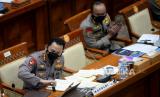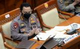 REPUBLIKA.CO.ID, JAKARTA -- Kapolri Jenderal Pol Listyo Sigit Prabowo mengikuti rapat kerja dengan Komisi III DPR di Kompleks Parlemen, Senayan, Jakarta,Rabu (16/6).