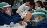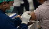 REPUBLIKA.CO.ID, BOGOR -- Petugas medis menyuntikkan vaksin Covid-19 kepada karyawan Danone Indonesia saat pelaksanaan Vaksinasi Covid-19 Gotong Royong Danone Indonesia di Sentul, Bogor, Jawa Barat, Kamis (17/6).