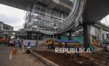 REPUBLIKA.CO.ID, JAKARTA -- Pekerja menyelesaikan pembangunan halte Centrale Stichting Wederopbouw (CSW) di Kawasan Kebayoran Baru, Jakarta, Kamis (17/6/2021). Proyek pembangunan jembatan layang atau skybridge untuk intergrasi Halte Transjakarta CSW dengan Stasiun MRT ASEAN ditargetkan akan selesai pada 22 Juni 2021 bertepatan dengan HUT DKI Jakarta.