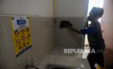 Petugas mempersiapkan ruang isolasi pasien Covid-19 di Rumah Susun Nagrak, Cilincing, Jakarta Utara, Jumat (18/6). Rusun Nagrak Cilincing dipersiapkan untuk menampung pasien Covid-19 dengan kapasistas sebanyak 1.020 pasien dari satu tower, sementara Kepala Unit Pengelolaan Rumah Susun III, Vita Nurviatin mengatakan sebanyak 1-5 tower disiapkan untuk lokasi pasien Covid-19. (FOTO : Republika/Thoudy Badai)
