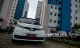 Mobil ambulan terparkir di Rumah Susun Nagrak, Cilincing, Jakarta Utara, Jumat (18/6). Rusun Nagrak Cilincing dipersiapkan untuk menampung pasien Covid-19 dengan kapasistas sebanyak 1.020 pasien dari satu tower, sementara Kepala Unit Pengelolaan Rumah Susun III, Vita Nurviatin mengatakan sebanyak 1-5 tower disiapkan untuk lokasi pasien Covid-19. (FOTO : Republika/Thoudy Badai)
